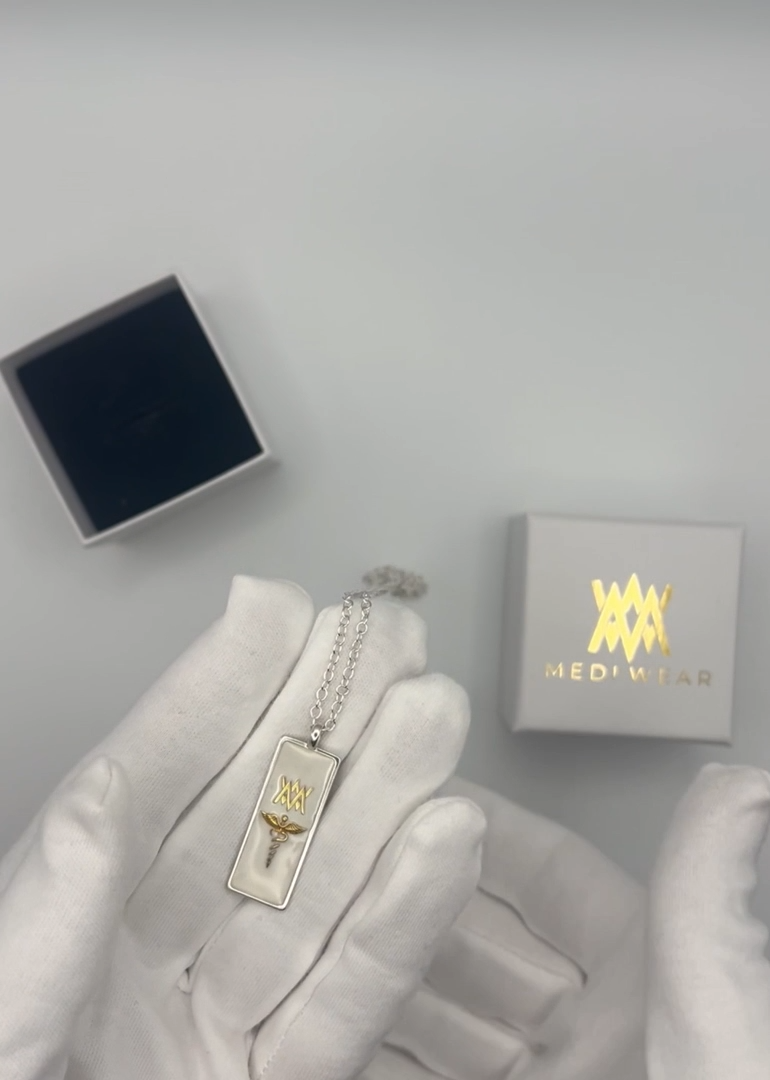 Every MediWear pendant is handcrafted and hallmarked in England from 100% recycled sterling silver. Designed to sit comfortably and look considered, each piece presents essential medical information clearly, combining refined design with a calm, life-saving function.